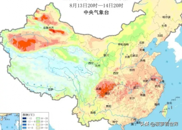 8月13号的白天,我国的一些地区将会非常炎热。特别是四川盆地、重庆、湖北、湖南北部、江西北部、福建北部、浙江、安徽中北部、江苏北部,以及新疆的吐鲁番盆地和南疆盆地东部,这些地方的部分区域最高气温将会达到35~37℃!有些地方甚至可能超过38℃。
