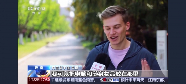 采访他说,在中国,女孩子深夜出门都很安心。更夸张的是,他去咖啡馆的时候,电脑、随身物品放座位上,而且,出去三四个小时再回来,东西不仅没少,有时候还被店员摆放得更好呢。