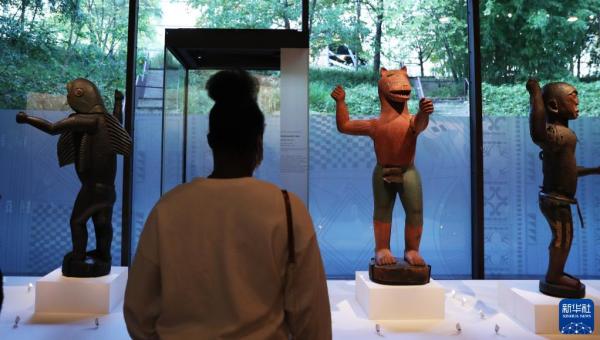 2021年10月28日,一名女子在法国巴黎凯布朗利博物馆参观即将归还贝宁的文物。 图源:新华社