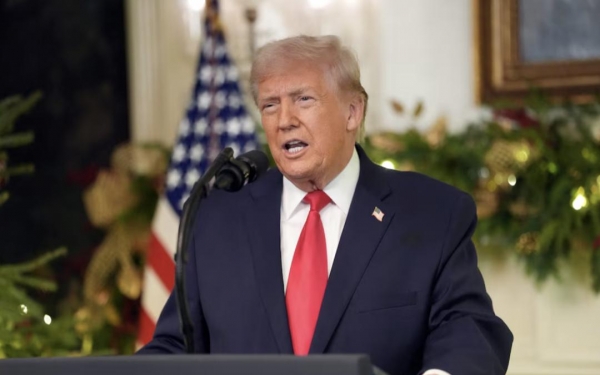 面对低迷的民意和明年底严峻的中期选举挑战,美国总统特朗普在2025年年底假日期间发表全国演讲,承诺将出台政策让"电费和其他所有物价都显著下跌"。图源:路透社