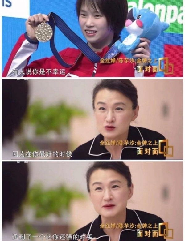 主持人问陈芋汐,你有没有感觉比不过全红婵的时候。