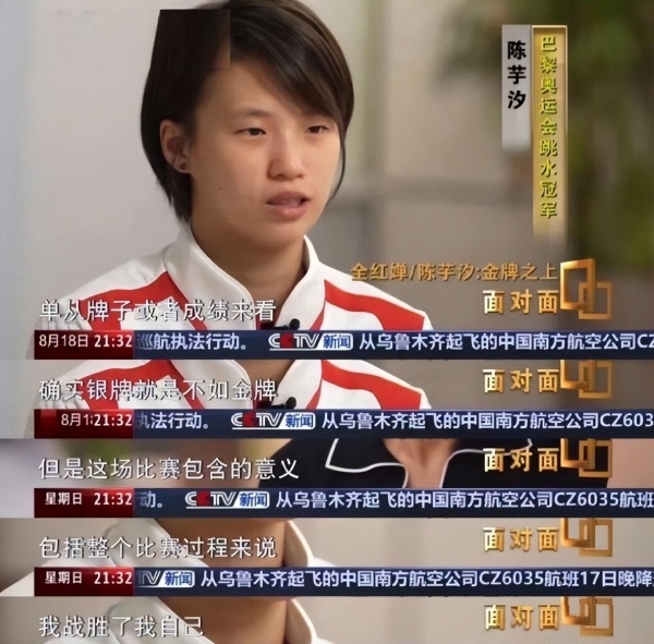 陈芋汐:我和她哪一个人得到,其实就等于是自己也得到了,因为这一块金牌都是我们中国的。单从牌子的成绩来看,银牌确实不如金牌,但这比赛的含义,包括整个比赛,我战胜了我自己。