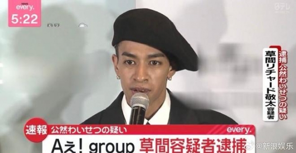 东京警视厅四谷警署警员迅速抵达,当场控制了处于醉酒状态的草间,以涉嫌违反《刑法》"公然猥亵罪" 将其逮捕。这则消息很快攻占日本娱乐新闻头条,# 日本男爱豆当街暴露下体被捕 #的话题迅速发酵。
