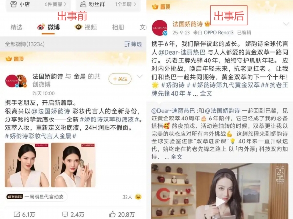 金晨刚官宣的娇韵诗彩妆代言,品牌直接删了直播预告。