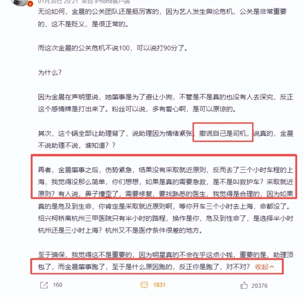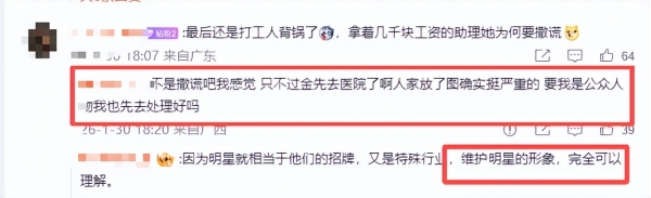 还有网友猜测,金晨出事自己溜,让助理顶包签认定书?
