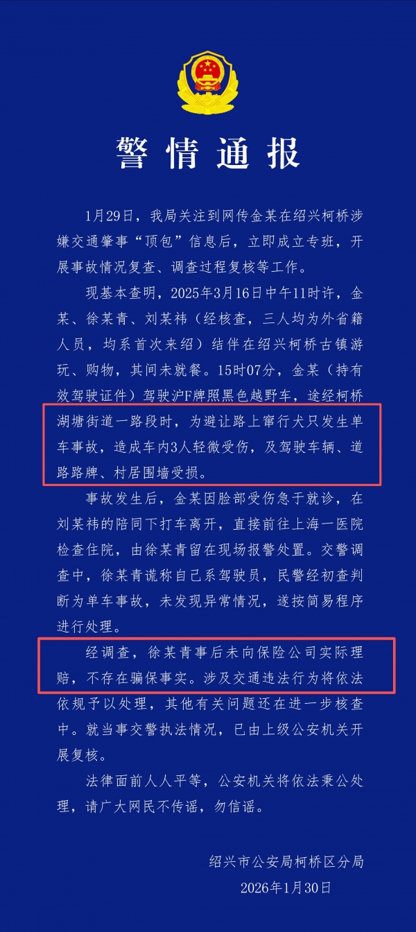 几乎同时,绍兴柯桥警方发布正式通报,给风波定了调: