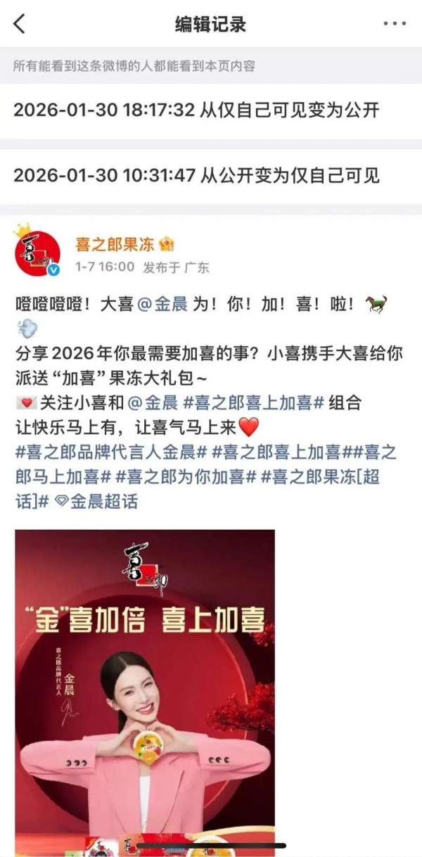 喜之郎更干脆,把平台上所有金晨的相关内容全隐藏了,一点痕迹都没留。