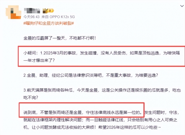 这起2025年3月就彻底了结的车祸,为啥偏偏选在2026年1月,金晨事业正红火的时候被翻出来?这时间点,巧得未免太刻意。