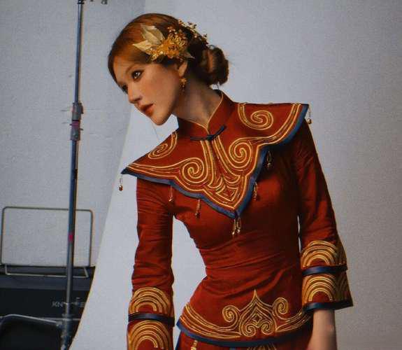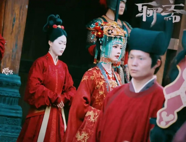 色彩博弈:红与白的极致碰撞,颠覆喜庆的视觉反噬,中式恐怖的核心魅力,往往藏在色彩的悖论里。赵露思这套鬼新娘造型深谙此道,以"铺天盖地的猩红"打破传统审美中红色的喜庆属性,完成了从吉祥到不祥的颠覆性转换。那身正红色嫁衣并非明媚鲜活,而是透着沉淀多年的腐朽感,领口袖口的繁复暗纹在阴影中若隐若现,仿佛浸染过岁月的阴气,裙摆褶皱里藏着未散的怨念。这种无节制的红色运用,恰好契合了中式哲学中"过犹不及"的法则--当象征生机与喜庆的红色被推向极致,便自然转化为血腥与灾祸的隐喻,与《红嫁衣:纸新娘》中"猩红嫁衣为死亡宣告"的设定形成奇妙呼应。