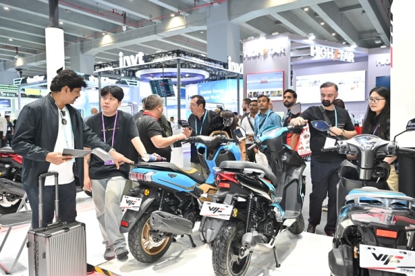 2026年4月17日,随着张雪机车的820RR-RS赛车在世界超级摩托车锦标赛(WSBK)葡萄牙站包揽两回合冠军,中国摩托车受到境外采购商青睐,海外订单持续走高。图为4月17日,在广东广州举行的第139届中国进出口商品交易会(广交会)第一期上,摩托车展区吸引不少境外采购商参观咨询。 中新社记者 陈楚红 摄 IC Photo