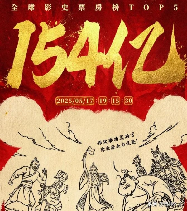2025年的春节档电影《哪吒之魔童闹海》凭借总票房154亿登顶中国影史总票房冠军,全球影史票房榜第5,也是全球影史票房前十中,唯一一部中国影片,这含金量不必多说。