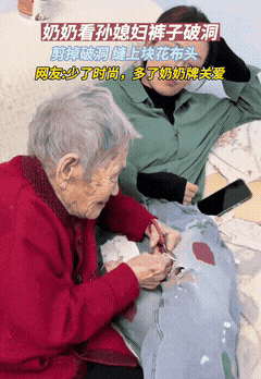 近日,一段"奶奶改造孙媳妇破洞裤子"的视频走红网络。孙媳妇不慎将裤子磨破,本打算丢弃,却被奶奶拦下。一番神操作后,满是破洞的裤子不仅得救,更变成了独一无二的爱心艺术品。