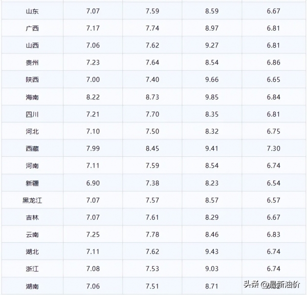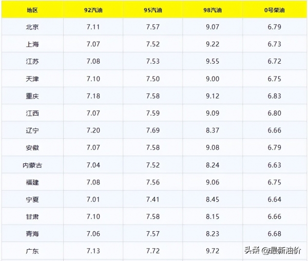 今日油价(10月1日)92,95,98汽油与0号柴油请看下方油价列表