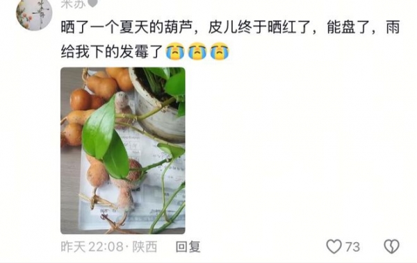 这颗发芽的核桃成了"雨灾活化石"。大哥拍了视频发出来,核桃上的嫩芽还在微微晃动,配文"盘着盘着成了传家宝,哦不,是传家苗"。评论区瞬间失控,有人建议"赶紧找个花盆种上,明年收获一筐核桃,盘不过来还能榨油";有人调侃"这核桃比人还懂养生,知道下雨天适合发芽";更损的是:"没发芽的都得怀疑是塑料的,你看人家这才是真材实料,连生命力都这么顽强。"