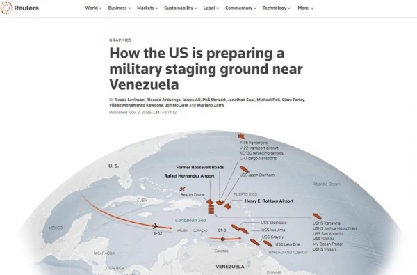 此前据中国新闻网援引路透社报道,自8月以来,美军向毗邻委内瑞拉的加勒比海地区不断集结舰艇、军机和兵力,目前"已具备在委境内开展军事行动的条件"。