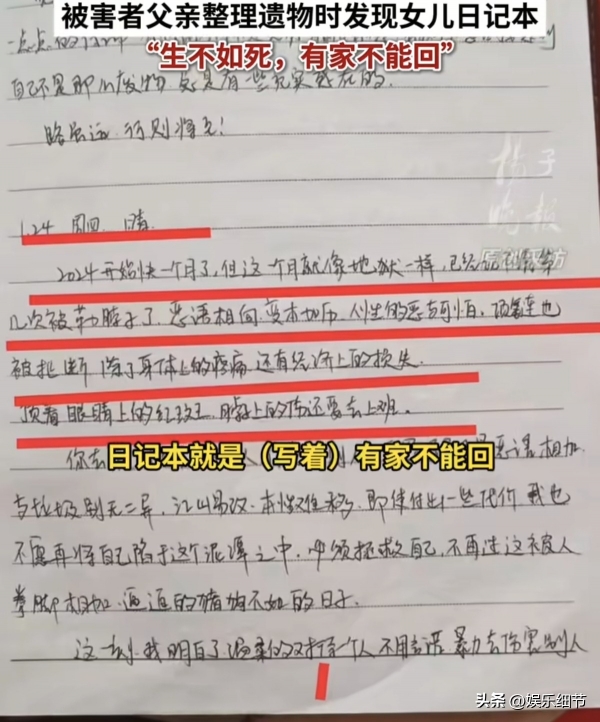 小董父亲称,女儿生前多次被殴打,在日记本写下"恐惧、害怕、无助"等字眼。