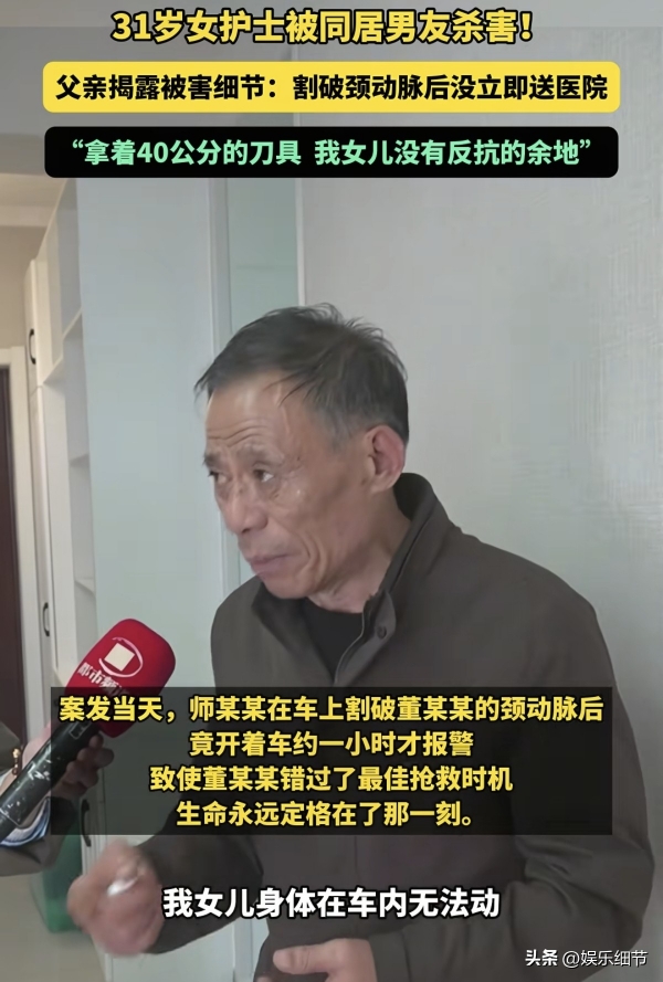 6月20日晚上,师某在车上向小董求婚,被拒后拿出一个月前就准备好的40厘米的双刃刀,割破了小董的颈动脉。