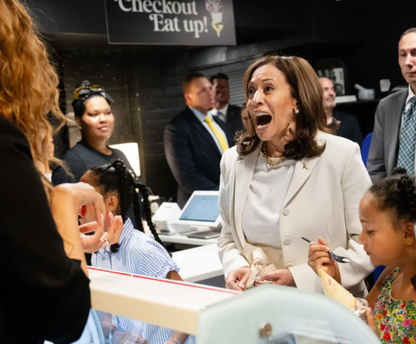 五分钟后,他开始敦促人们向哈里斯的竞选活动捐款。
