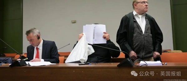 (图为庭上的钟义,德媒在报道时因当地法规为其面容打了码)
