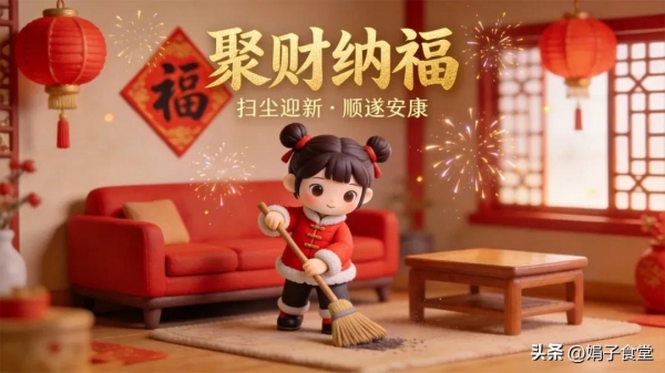 老话说"财不入脏门,福不入恶家",今天"招财日"一定要把家里打扫干净,老一辈人说这叫"扫尘迎财"。扫尘与"扫陈"谐音,今天打扫卫生寓意把家里过去一年陈旧的晦气、穷气扫出门,这样才能给新年的财气、福气腾出地方。