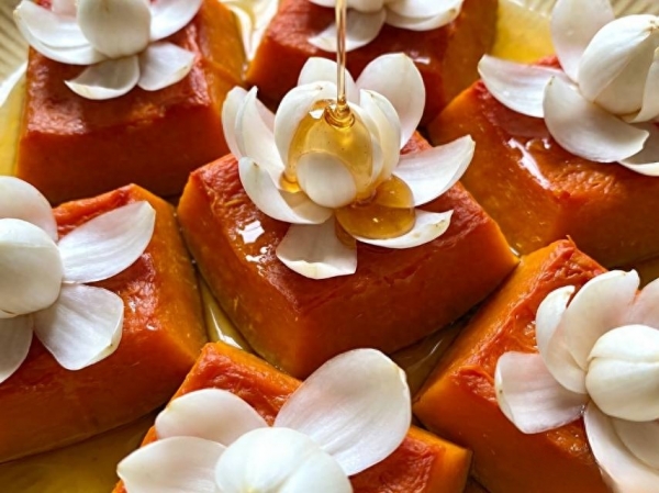 6. 蒸好后取出,放至温热,喜欢更清甜的可以淋上少许蜂蜜,搅拌一下就能吃,南瓜吸满了百合的清香,百合裹着南瓜的甜润,口感超棒。