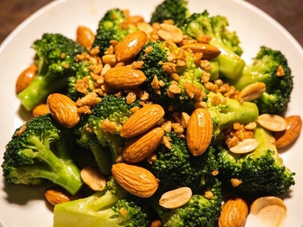 核心作用:杏仁分甜杏仁和苦杏仁,这里用甜杏仁,润肺止咳、润肠通便,西兰花富含维生素C、膳食纤维和多种矿物质,维生素C能提升免疫力,二者搭配,营养均衡,口感脆嫩,既能润肺去燥,又能为身体补充营养,增强抵抗力,适合全家食用。