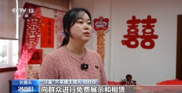 "泾喜"共享铺主理人 周佳佳:婚房喜事、接亲道具,向群众免费展示和租赁。