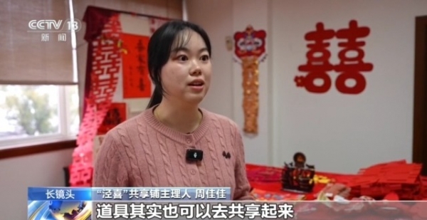 "泾喜"共享铺主理人 周佳佳:我问过结完婚的村民,布置花了多少钱,基本上每家都是近小千。我在想,婚纱可以公益共享,婚房道具也可以共享起来。