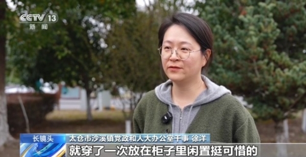 太仓市沙溪镇党政和人大办公室干事 徐洋:朋友结婚,我陪她选婚纱,看她试了一件又一件,我突然想到,这么精心挑选的婚纱就穿一次放在柜子里闲置挺可惜。一边是有闲置,一边是有需求,是不是可以搭建一个平台,让婚纱流动起来。