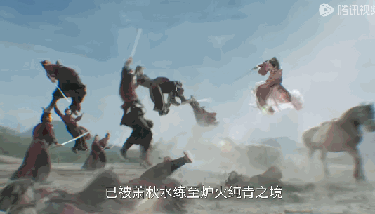马上的男主,举着剑一动不动,摆个pose就出镜了。