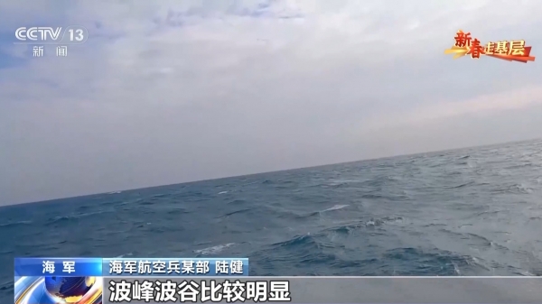海军航空兵某部 陆健:首先,"搜"是关键,只有找到目标,机组才能相互配合完成任务。有时候风浪比较大,波峰波谷比较明显,有三四米的浪高,非常考验整个机组密切配合的默契度。