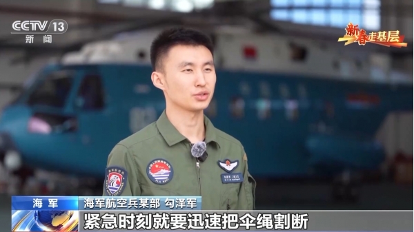 海军航空兵某部 勾泽军:我们在海上救护面临各种险情。比如,飞行员被迫跳伞,和伞绳来不及脱离,就很有可能发生被伞绳缠绕的情况。这就大大增加了营救的难度和风险。甚至,我自己也有可能会被伞绳缠绕,情况就更复杂了。我们会随时带着伞刀,紧急时刻就要迅速把伞绳割断,尽全力实施营救。