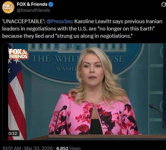 令人震惊的是,美国白宫发言人莱维特声称,美国之所以团灭伊朗领导层,是因为他们在谈判中对美国"撒谎",这让美国总统特朗普"无法忍受"。