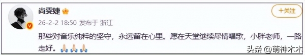 吉克隽逸则用袁惟仁写的词写"开了笑了散了"送别,下半句出自歌曲《生活在别处》,祝袁惟仁去向更自由的地方了。尚雯婕祝小胖老师一路走好,还表示那些纯粹的音乐都将永远记在心中,愿他在天堂尽情歌唱。
