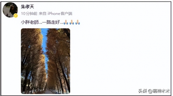朱孝天晒出梧桐大道,发文祝"小胖老师,一路走好"。