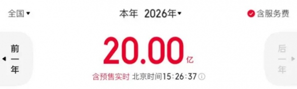 另据网络平台数据,截至2月1日15时26分,2026年年度票房已超20亿元。