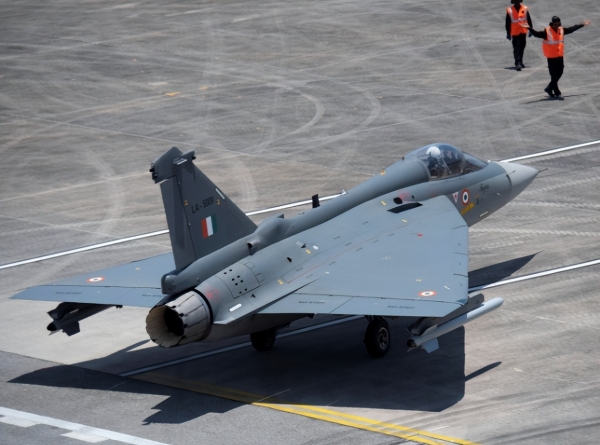 印度这次派出了两架LCA参展,即25号机和26号机。25号机做地面静态展示,结果被发现漏液体,印度地勤马上用透明胶条贴住,还用购物纸袋子去接液体。印度官方解释说是冷凝水,但从液体的颜色和浓稠度来看,很像是滑油。