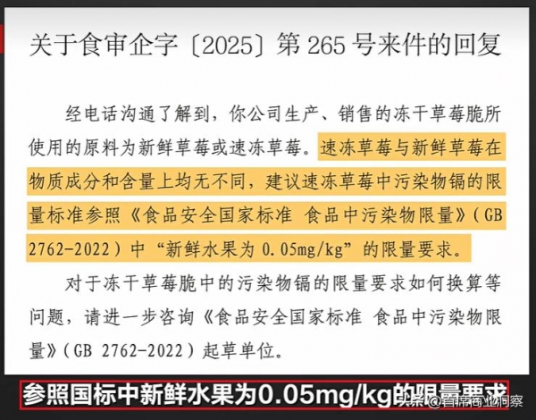 其实也不能完全怪官方抠字眼,目前现行的国标和相关法律中,也只是规定了新鲜的草莓等水果标准,并没明确指出冻干草莓的相关标准和规定。