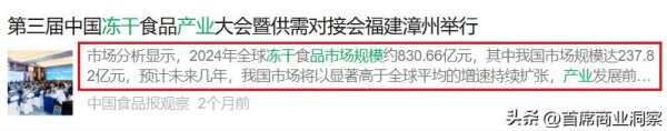 要知道,今年第三届中国冻干食品产业大会暨供需对接会在福建漳州隆重举办,我国的冻干食品市场规模已达到237.82亿元,不仅明显高于全球平均增速,漳州的相关产业年产值已超20亿元。