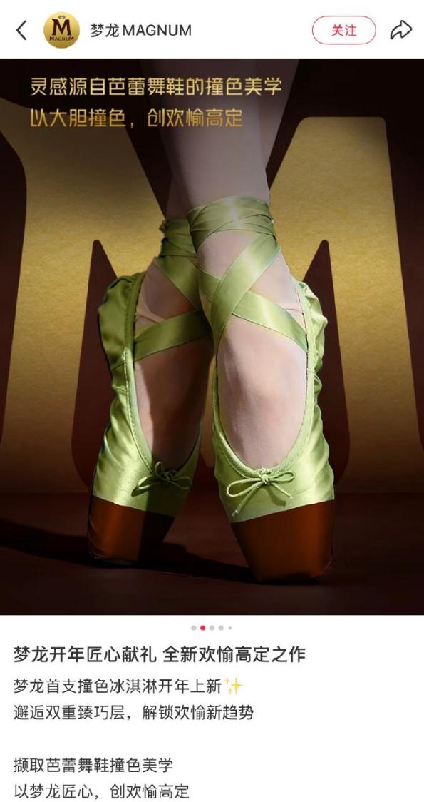 4 月 13 日,梦龙发布的一则开心果冰淇淋广告引发争议,宣传图片称 " 灵感源自芭蕾舞鞋的撞色美学 ",有网友认为用芭蕾舞鞋与冰淇淋进行关联引发不适。
