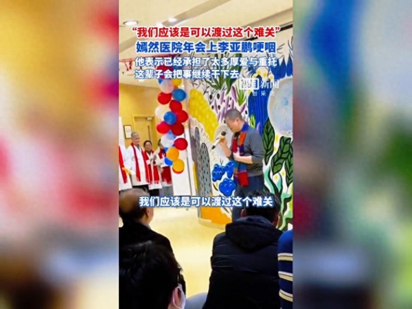 嫣然医院年会上李亚鹏哽咽,他表示已经承担了太多厚爱与重托,这辈子会把事继续干下去。