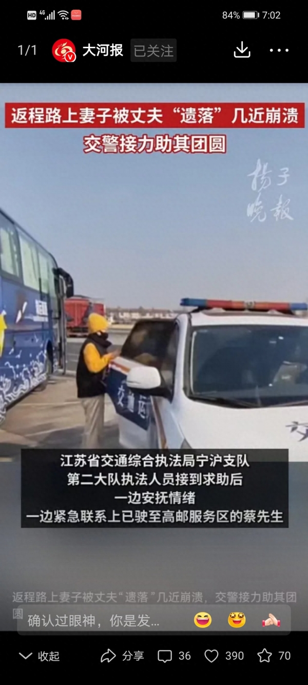 - 执法人员太暖心了,为返程归途保驾护航。