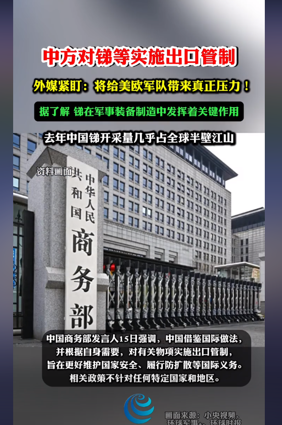 近日,中国商务部和海关总署宣布对锑等关键物项实施出口管制,这一决策引起了国际社会的广泛关注,尤其是美国和欧洲的军事领域。