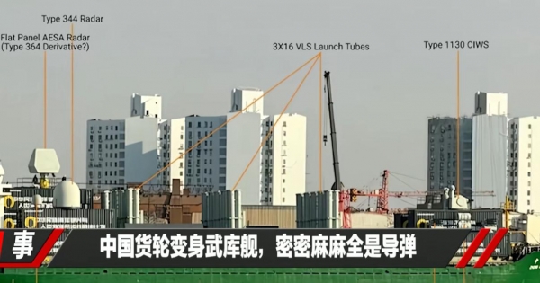 要知道一艘052C型驱逐舰的垂发单元也不过48个,这艘改装货轮的火力密度已然看齐专业战舰。