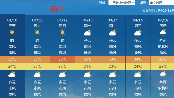 城市当中像海口,今后几天将会迎来持续的高温天气,到了下周一的时候还会迎来今年的首个40度,酷热突出,而广西稍逊于海南,其中有10个市的最高气温达到或超过35度,像南宁城区会连续4天出现35度的高温,而百色高温更是冲到了39度。在此提醒这一带的朋友,外出需要做好防晒工作,避开高温时段,及时的补充水分,以免中暑。