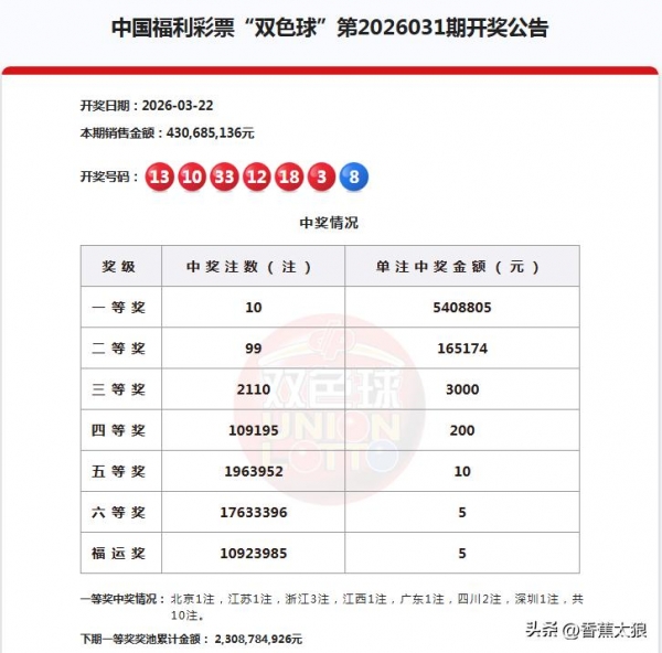 星期日,双色球26031期开奖号码公布了,本期双色球开出的号码为红球:3、10、12、13、18、33蓝球:8。红球开出了1组连号,1组同尾号和1枚重号。