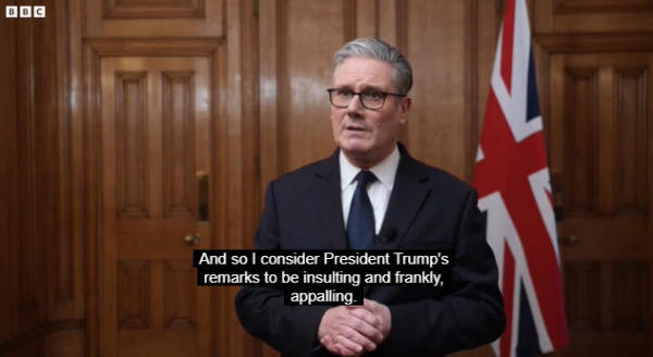 斯塔默23日发表讲话,要求特朗普道歉 视频截图