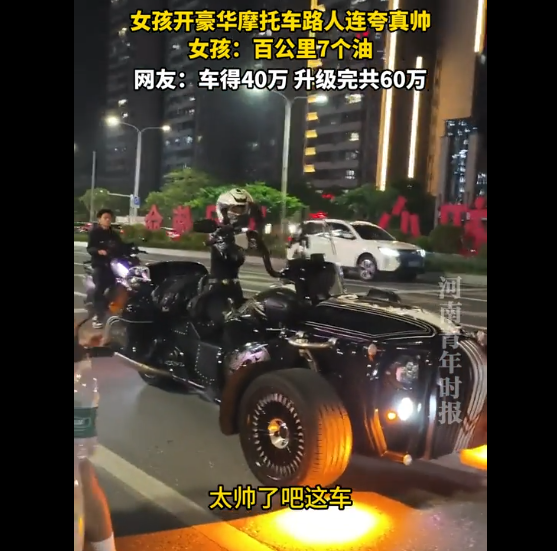 近日,一段女骑手深夜骑行豪华改装摩托的视频走红网络。画面中,骑手身着专业装备,驾驶着一辆外观霸气的黑色巡航摩托,在城市街头格外吸睛。