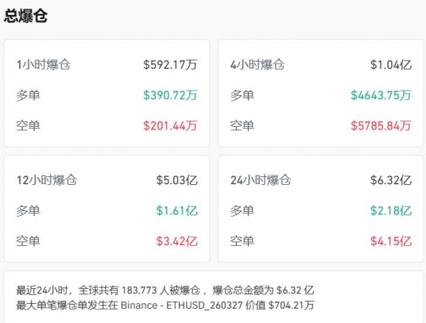 据Coinglass数据显示,过去24小时,加密货币全网爆仓人数超18万。