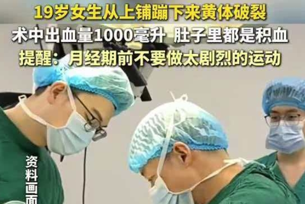 黄体破裂可不是大意的事儿,在育龄女性月经周期后半段,黄体本就脆弱,像小萱这样图省事蹦下上铺的剧烈运动,就极易引发危险。